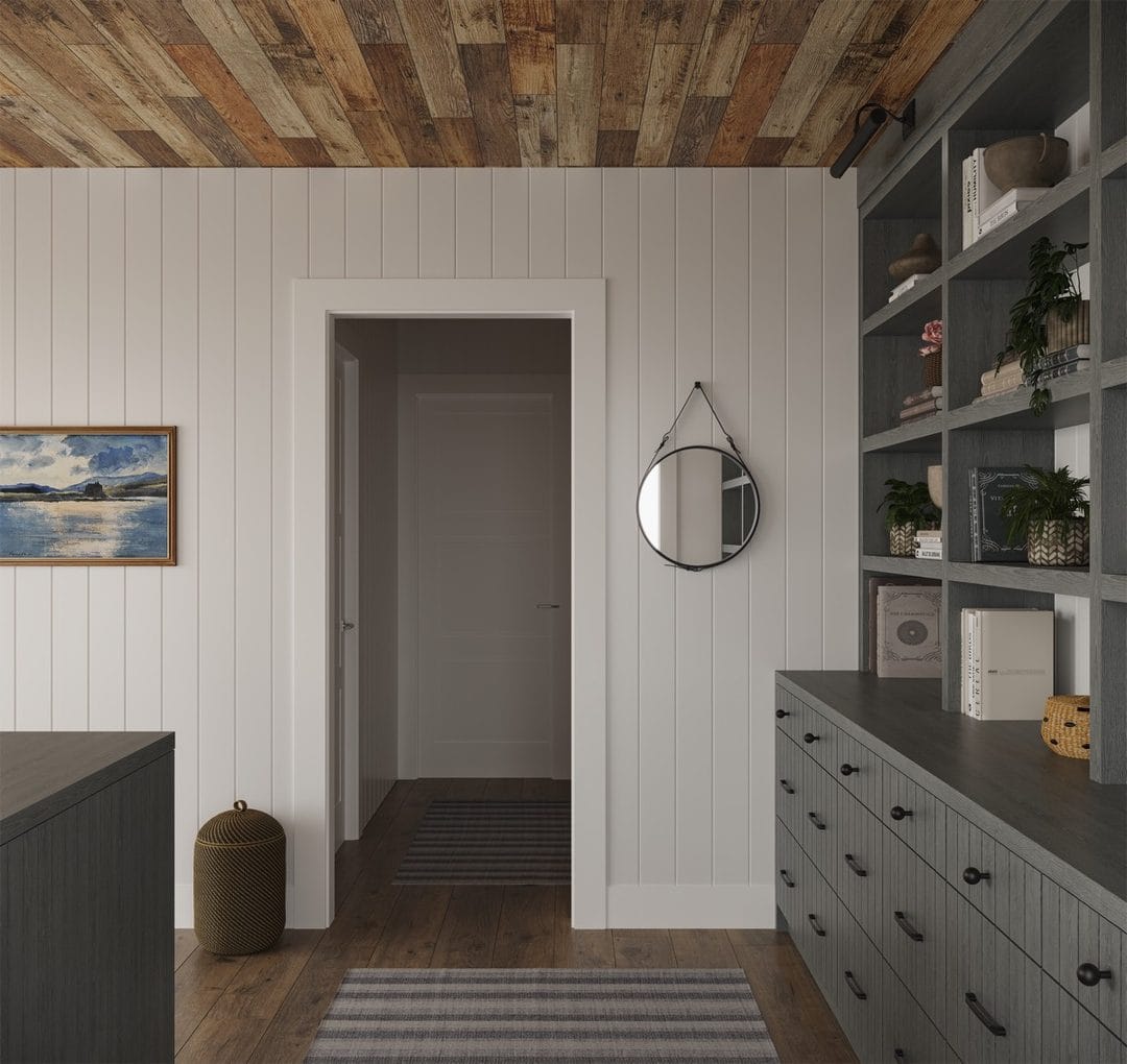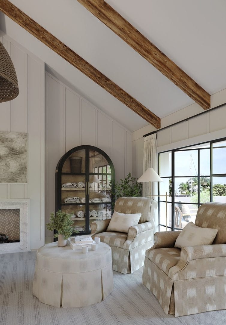 The living areas showcase the craftsmanship seen in the images, including custom millwork, shiplap wall treatments, exposed ceiling beams, and architectural lighting. These details reinforce the home’s custom home renovation character while enhancing warmth and sophistication. Indoor outdoor living renovation elements were also considered, maximizing natural light and strengthening the connection between interior spaces and the coastal surroundings.