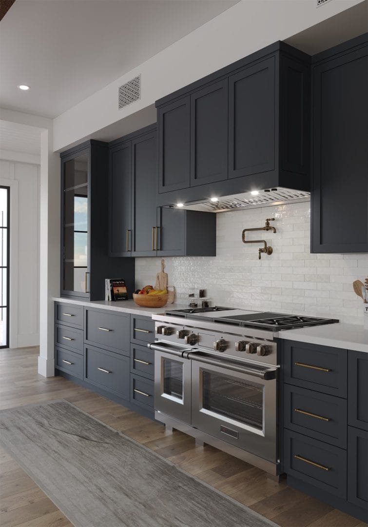 The kitchen remodeling in Highland Beach became a centerpiece of the home. Custom cabinetry installation in deep, rich tones was paired with quartz and stone finishes to create contrast and elegance. A professional-grade appliance package, custom range hood, and statement lighting elevated the space while maintaining functionality. Luxury flooring installation throughout the home unified the design and reinforced the coastal modern renovation aesthetic.