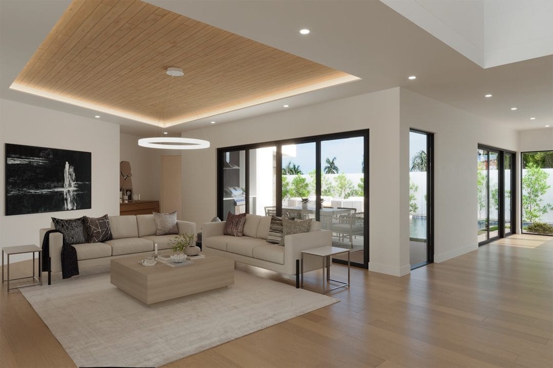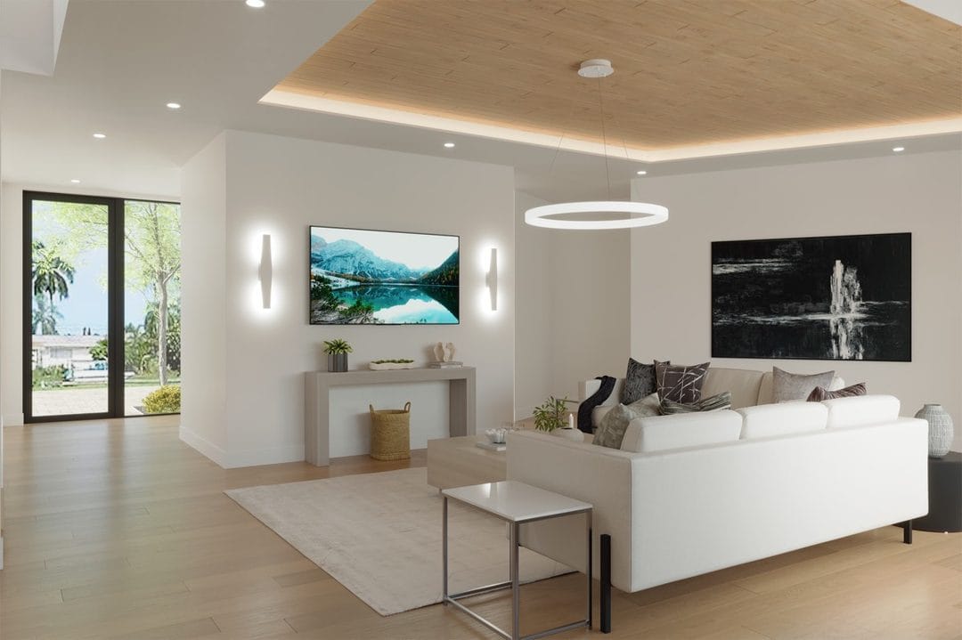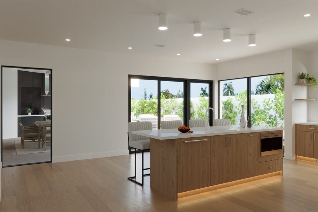 Next, the structural renovation phase addressed framing reinforcements, load-bearing adjustments, and preparation for impact window installation. At the same time, all core systems were upgraded, including electrical, plumbing, HVAC, and smart home infrastructure. These improvements ensured the home would meet modern building standards while supporting high-end finishes and long-term durability.