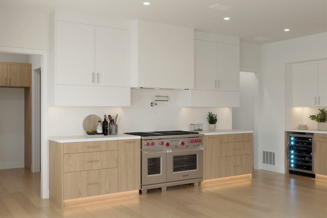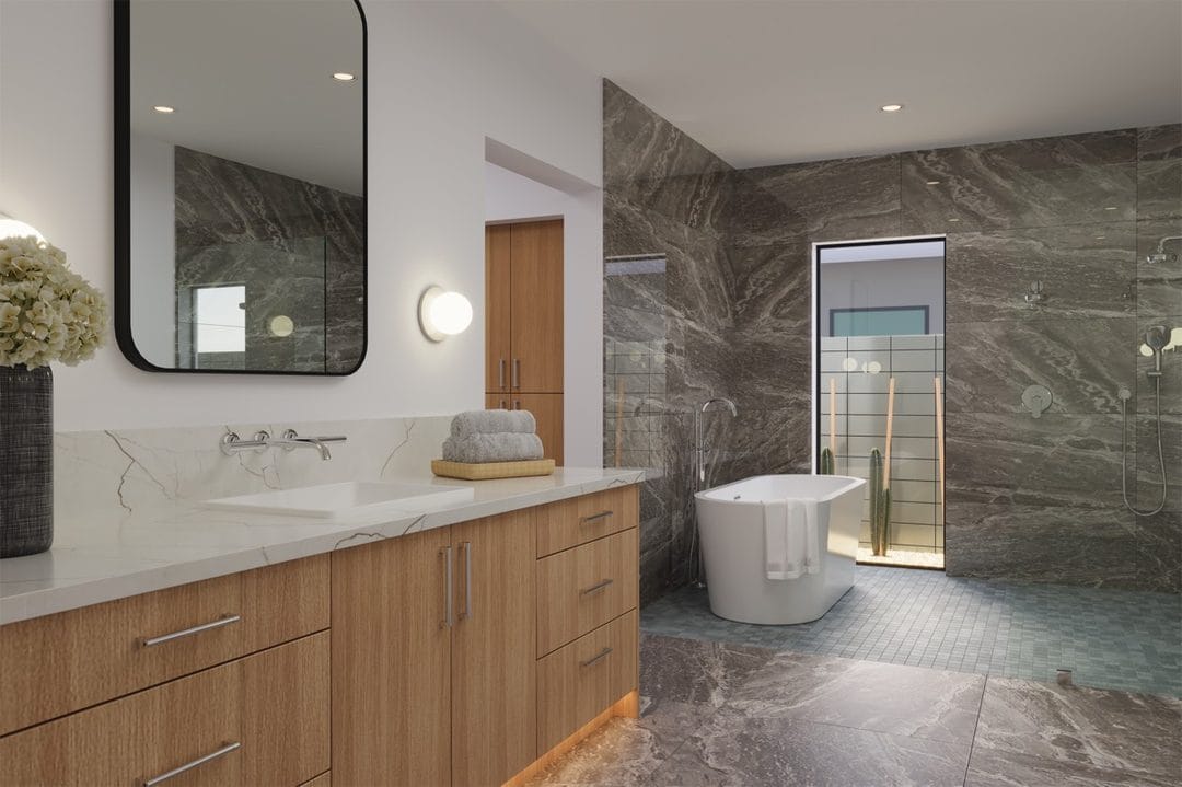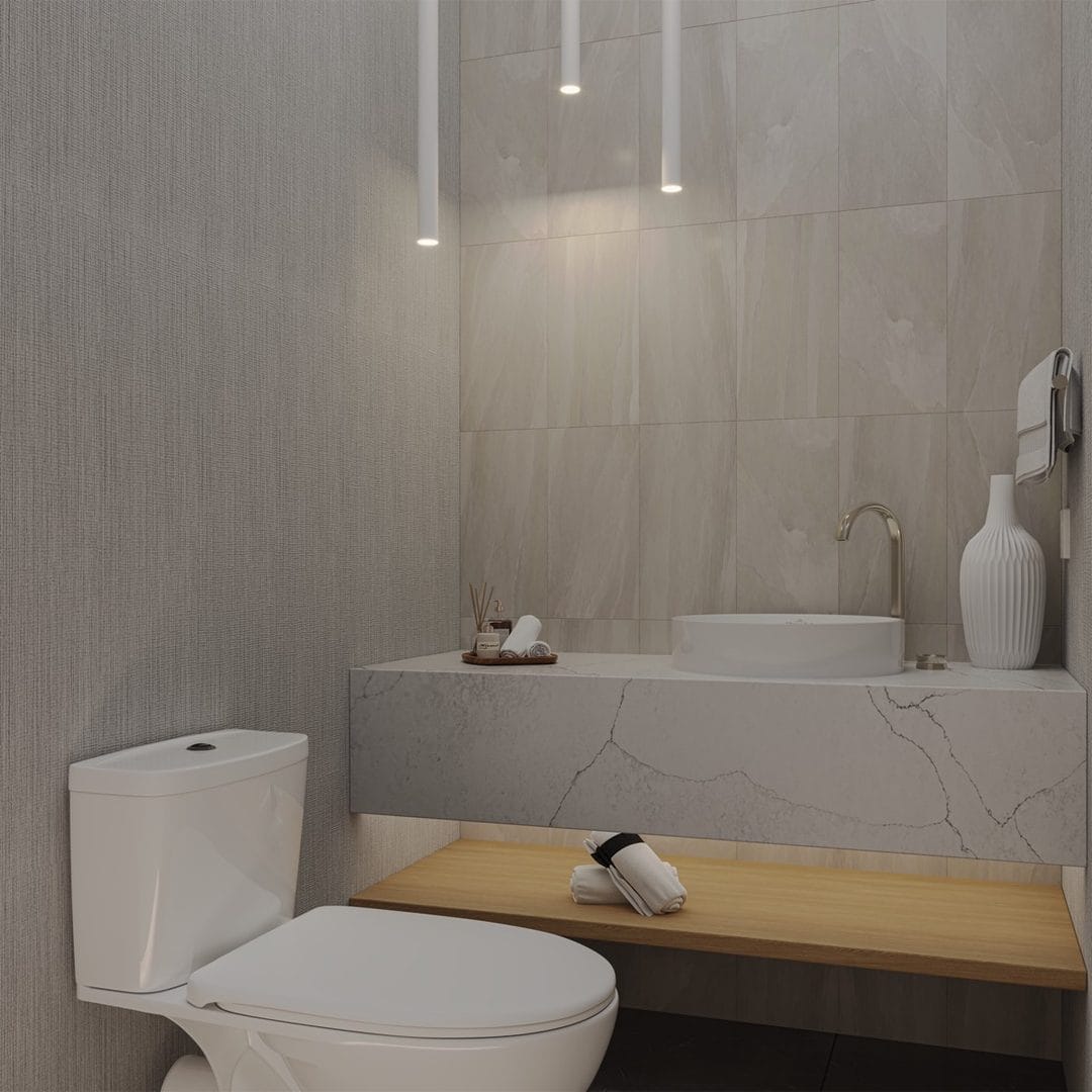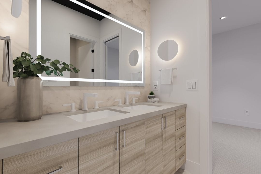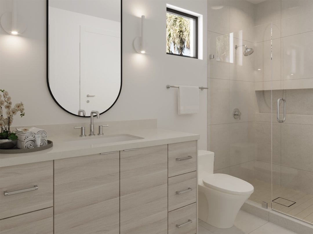 As the project progressed, RENOVA transitioned into interior construction and finish installation. Custom millwork and cabinetry installation elevated the home’s design, while luxury flooring installation and large-format tile installation added visual continuity and durability. Kitchens and bathrooms were finished with quartz and stone surfaces, modern fixtures, luxury shower installations, and designer lighting that complemented the overall coastal modern aesthetic.